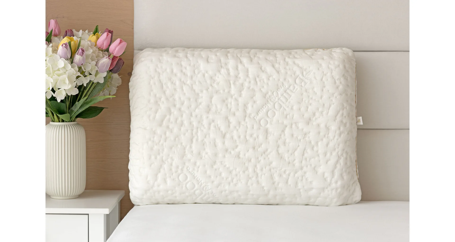 Potah polštáře s příměsí bambusové viskózy je prodyšný, skvěle absorbuje vlhkost, nepříjemné pachy a snadno vyrovnává teplotní rozdíly v jakémkoliv ročním období. Bambusový anatomický polštář je ideální pro alergiky a jedince s citlivou pokožkou.