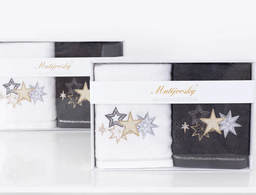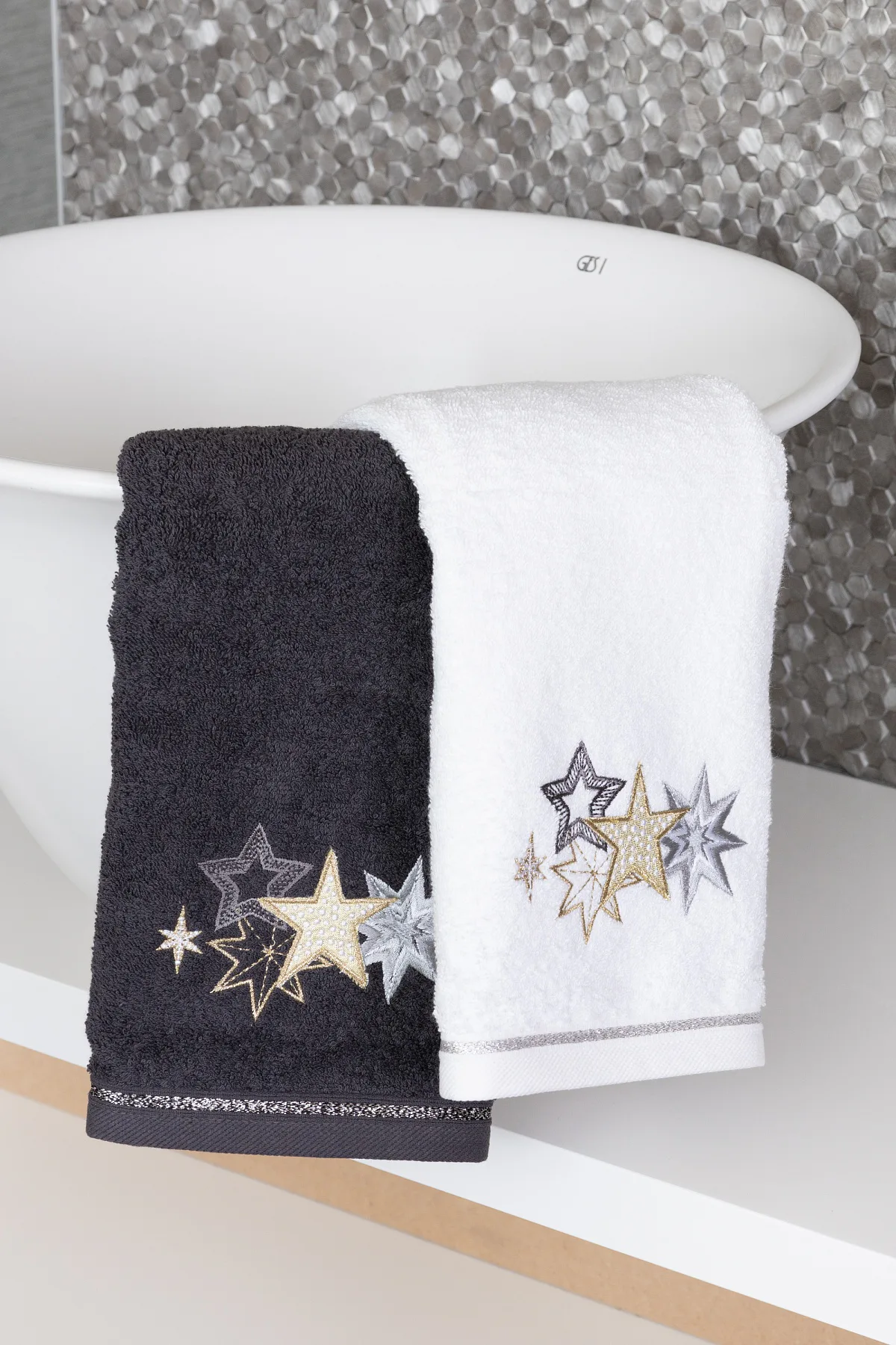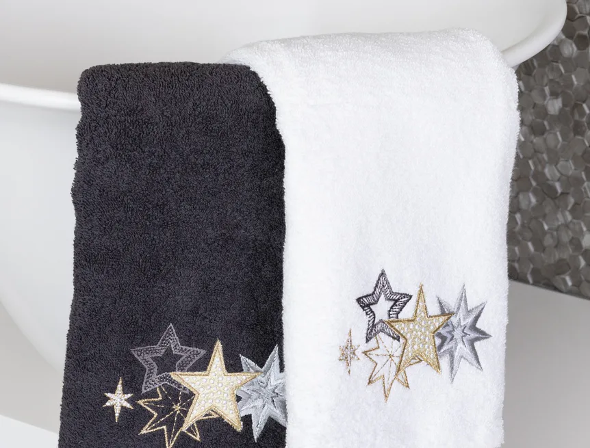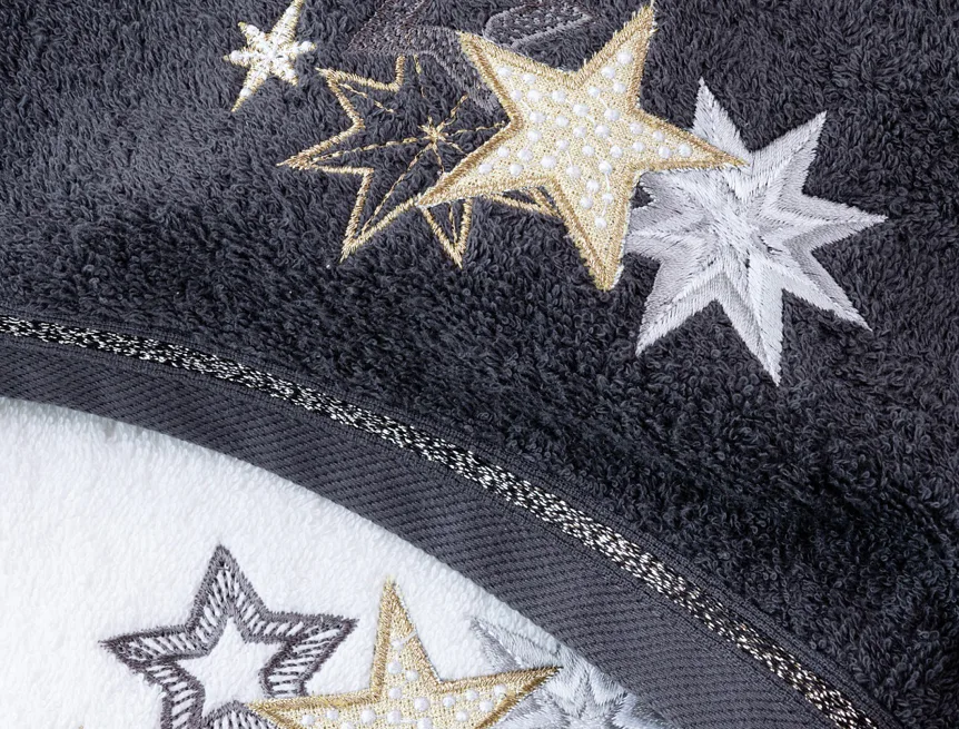 - antracitově šedý ručník, výšivka s motivem hvězdiček