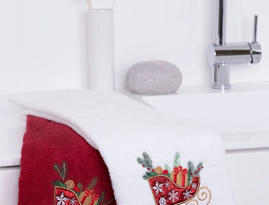 • bílý ručník, výšivka s motivem vánočních saní