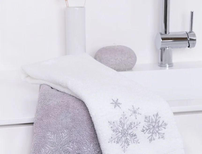 • bílý ručník, výšivka s motivem sněhových vloček