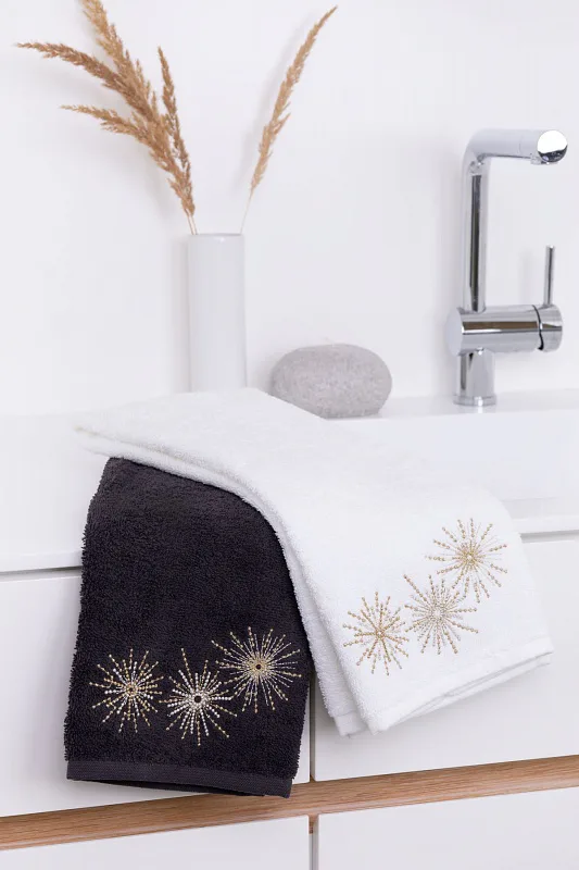 • antracitový ručník, výšivka s motivem vánočních prskavek