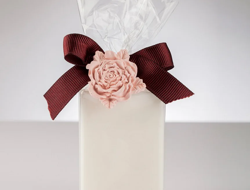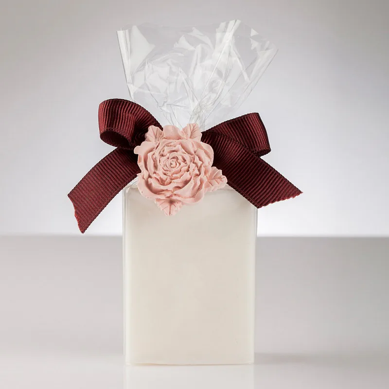 Elegantně zabalené dárkové mýdlo s ozdobným kamínkem je skvělým tipem na maličkost darovanou od srdce.