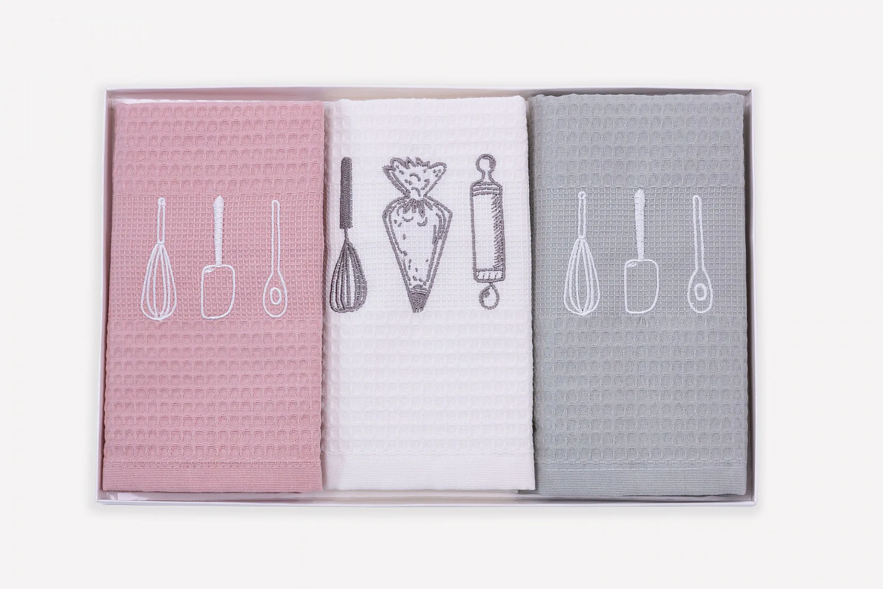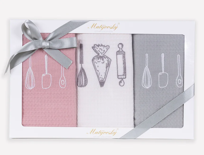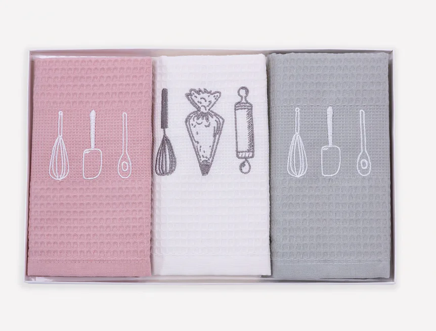 Obsah balení: 3 kusy vaflových utěrek s výšivkou