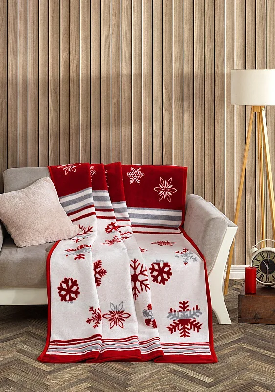Design: motiv sněhových vloček v kombinaci krémově bílá, tmavě červená a světle šedá