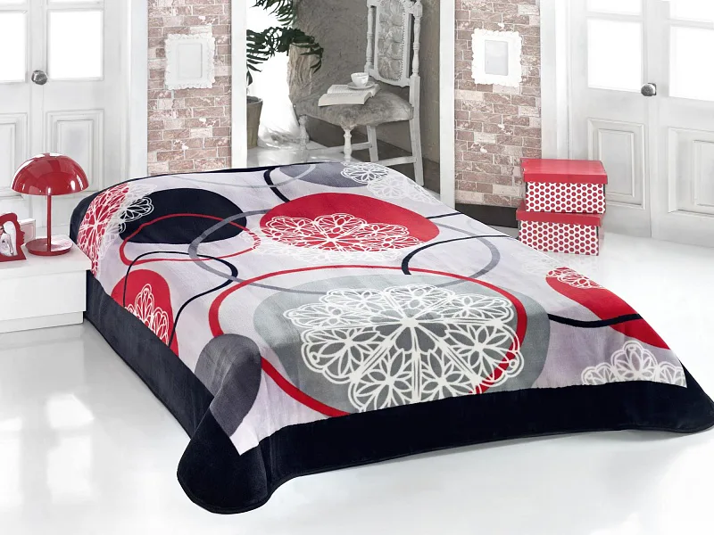 Luxusní deka s mimořádně hladkým a jemným povrchem, pro vaše dokonalé pohodlí. Španělské deky se řadí do kategorie nejkvalitnějších dek a vysokého uživatelského komfortu. Deka DELISA s výraznými motivy kol a stylizované květiny v tónech šedé, černé, červené a krémové.