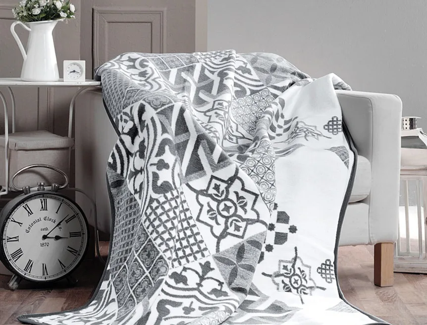 Luxusní bavlněná deka s hustým vlasem, hřejivá a hebká na omak. Nová receptura tkaní je zárukou lehkosti a skvělé prodyšnosti. Deka ELIXIR bude jedinečným doplňkem vašeho domova a nepostradatelným společníkem pro chladné večery. Kombinace neutrálních šedých odstínů na světlém podkladu s jemným melírem nechá vyniknout moderní patchworkový vzor.