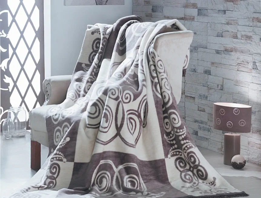 Deku můžete elegantně využít i jako ozdobný přehoz. Deka je olemována světle hnědou lemovkou (bez třásní).