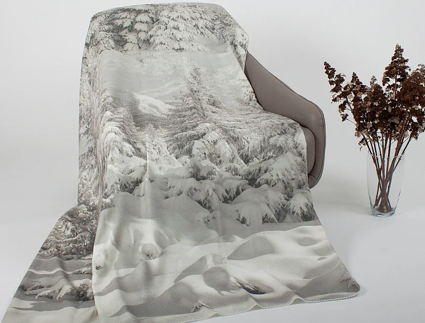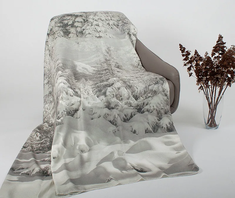Pléd je opatřen digitálním potiskem pouze z jedné strany, zadní strana deky je bílá. Okraje zdobí decentní obšití v bílé barvě.