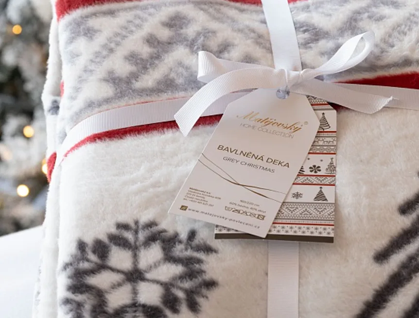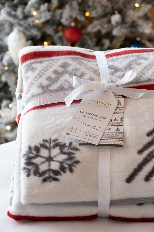 Luxusní bavlněná deka s hustým vlasem, hřejivá a hebká na omak. Nová receptura tkaní je zárukou lehkosti a skvělé prodyšnosti. Deka Grey Christmas se stane jedinečným doplňkem vašeho domova a nepostradatelným společníkem pro chladné večery. Deku můžete elegantně využít i jako ozdobný přehoz.