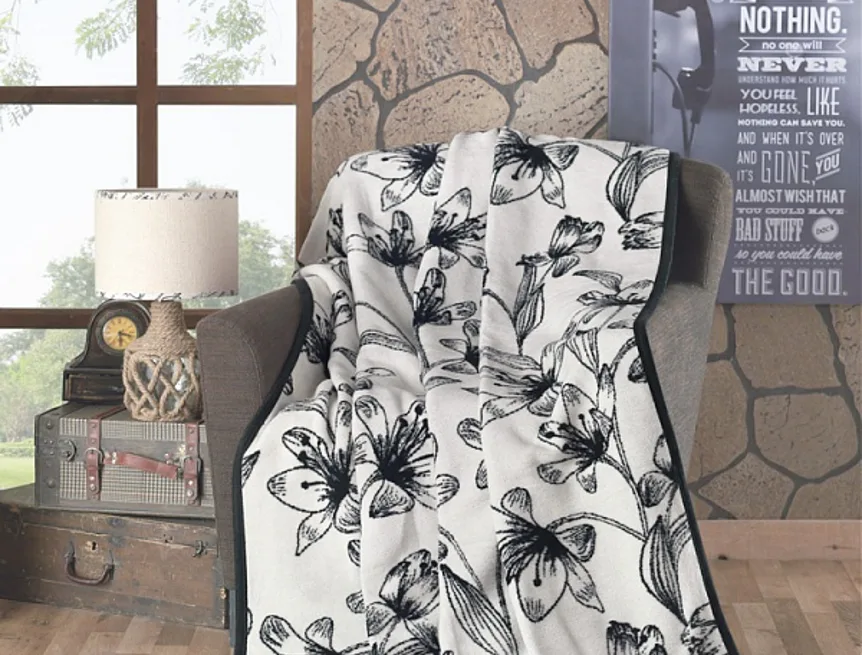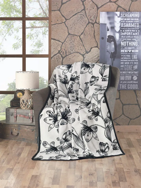 Luxusní bavlněná deka s hustým vlasem, hřejivá a hebká na omak. Atraktivní černobílý květinový vzor bude jedinečným doplňkem vašeho domova a nepostradatelným společníkem nejen pro chladné večery.