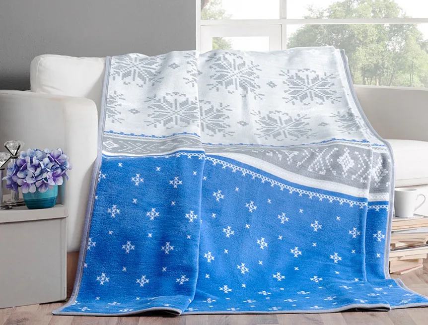 Luxusní bavlněná deka s hustým vlasem, hřejivá a hebká na omak. Nová receptura tkaní je zárukou lehkosti a skvělé prodyšnosti. Deka KIRA bude jedinečným doplňkem vašeho domova a nepostradatelným společníkem pro chladné večery. Zářivá kontrastní kombinace ledových odstínů modré a šedé barvy Vás uklidní.