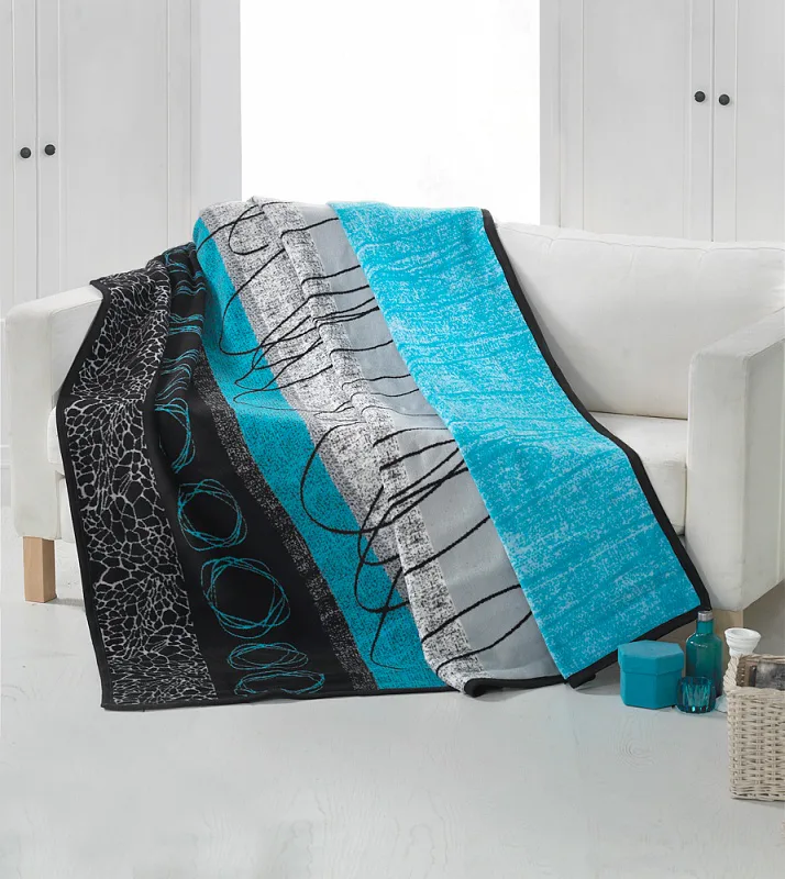 Luxusní bavlněná deka s hustým vlasem, hřejivá a hebká na omak. Oblíbený dezén LOCARNO bude jedinečným doplňkem vašeho domova a nepostradatelným společníkem nejen pro chladné večery. Deka je laděna do odstínů tyrkysové, černé a šedé. Druhá strana deky je provedena inverzně.