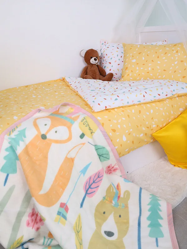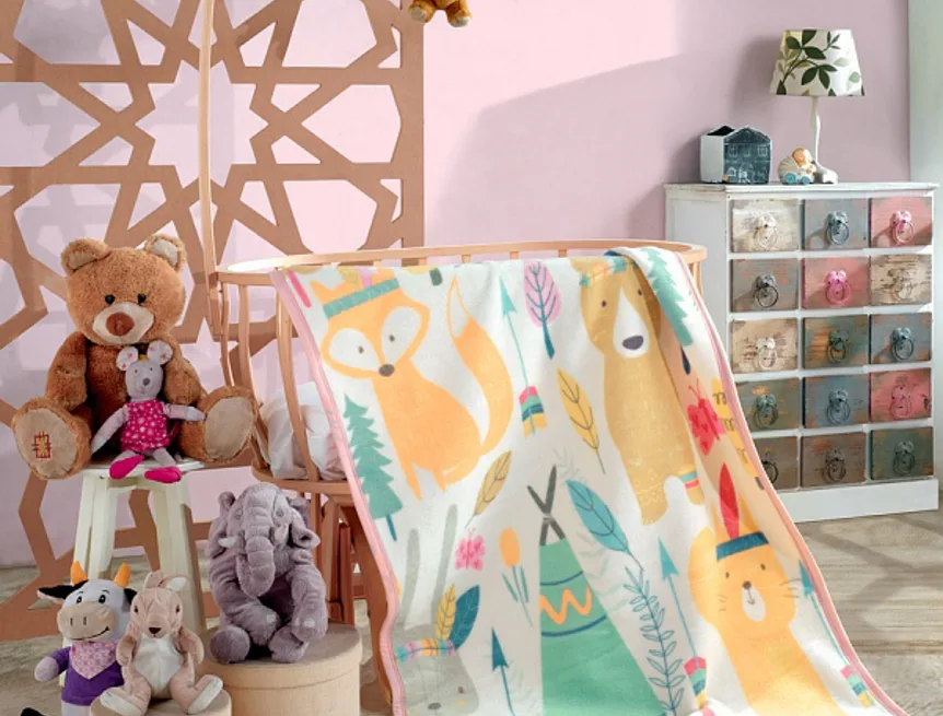 Dětská deka s vysokým podílem bavlny a hustým vlasem je příjemně hřejivá a hebká na omak. Deka Lotta bude skvělým společníkem v dětském pokojíčku nebo třeba v kočárku. Veselý motiv s roztomilými lesními zvířátky v moderních pastelových odstínech rozjasní den každému dítěti.