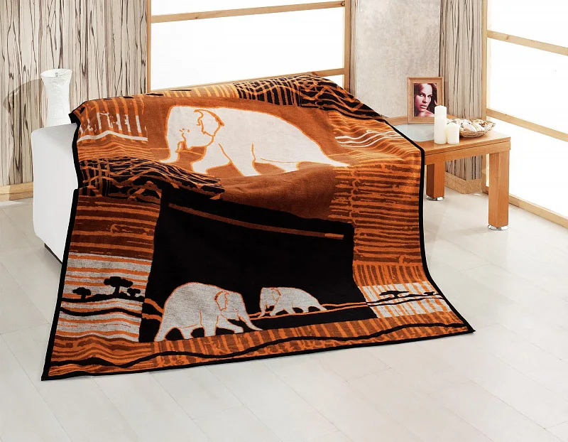 Luxusní deka MALAWI s hustým vlasem, hřejivá a sametová na omak. Atraktivní dezén zajistí, že deka bude jedinečným doplňkem vašeho domova a nepostradatelným společníkem pro chladné večery. Dýchne na vás atmosféra divoké přírody a majestátních slonů. Povrchu dominují teplé odstíny lískového oříšku, cihlové a černé.