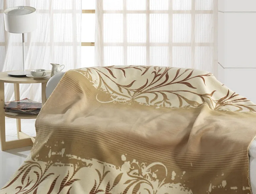 Luxusní deka s hustým vlasem, hřejivá a sametová na omak. Atraktivní dezén MALIA zajistí, že deka bude jedinečným doplňkem Vašeho domova a nepostradatelným společníkem pro chladné večery. Deku můžete elegantně využít i jako ozdobný přehoz. Deka je olemována světle hnědou lemovkou, kombinuje jemný florální motiv a decentních přírodních barvách (světlá vanilka, bílá káva s karamelovými odstíny).
