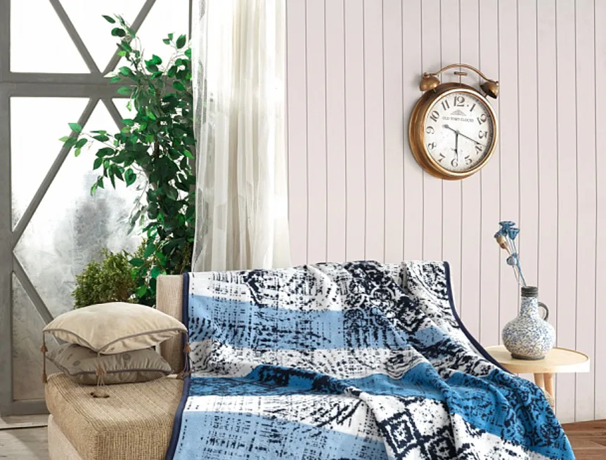 Luxusní bavlněná deka s hustým vlasem, hřejivá a hebká na omak. Nová receptura tkaní je zárukou lehkosti a skvělé prodyšnosti. Deka Mareo se stane jedinečným doplňkem vašeho domova a nepostradatelným společníkem pro chladné večery. Moderní vzor s nádechem etno stylu v paletě modrých odstínů v kombinaci s krémově bílou doladí každý mladistvý interiér.