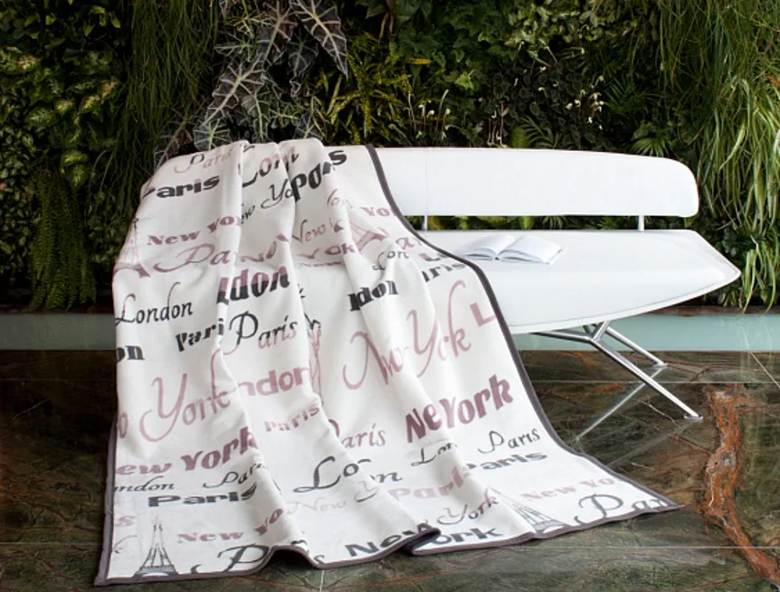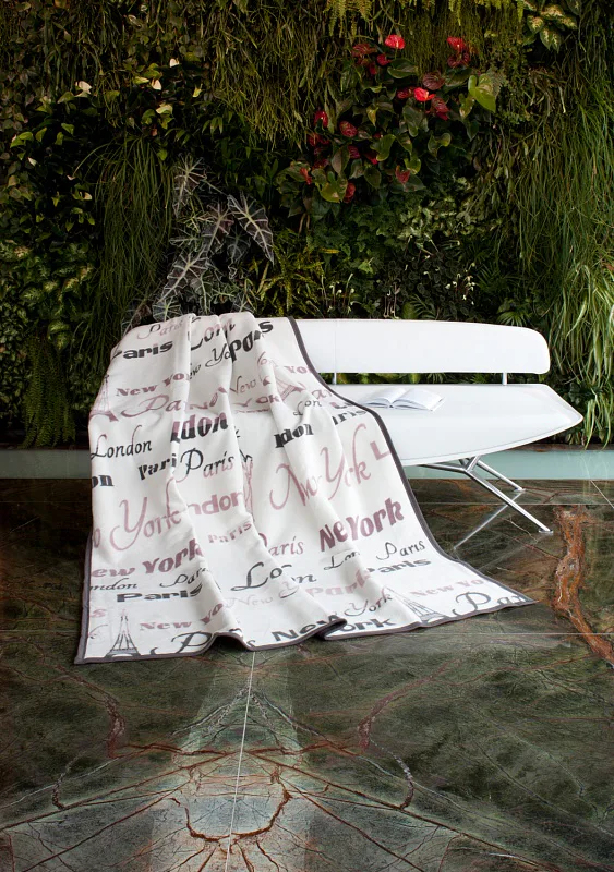 Luxusní deka METROPOL nápaditě zachycuje siluety velkoměst a nápisů. Deka má hustý vlas, je hřejivá a sametová na omak. Atraktivní dezén zajistí, že deka bude jedinečným doplňkem vašeho domova a nepostradatelným společníkem pro chladné večery. Smetanové tóny nechávají vyniknout pastelové odstíny pudrové a šedé. Fotografie zachycují přední i zadní stranu deky.