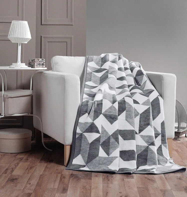 Luxusní bavlněná deka s hustým vlasem, hřejivá a hebká na omak. Nová receptura tkaní je zárukou lehkosti a skvělé prodyšnosti. Deka MOSAIC bude jedinečným doplňkem vašeho domova a nepostradatelným společníkem pro chladné večery. Stylový trojúhelníkový vzor v neutrálních odstínech šedé doplní každý moderní interiér.