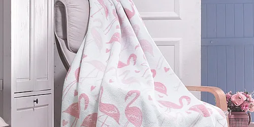 Luxusní bavlněná deka s hustým vlasem, hřejivá a hebká na omak. Nová receptura tkaní je zárukou lehkosti a skvělé prodyšnosti. Deka PINK FLAMINGO bude jedinečným doplňkem vašeho domova a nepostradatelným společníkem pro chladné večery. Atraktivní, ale přesto velmi něžný motiv s plameňáky v pastelové růžové a béžové barvě na přírodním bílém podkladu zaujme každého vyznavače současných trendů. Spodní strana deky je provedena inverzně.