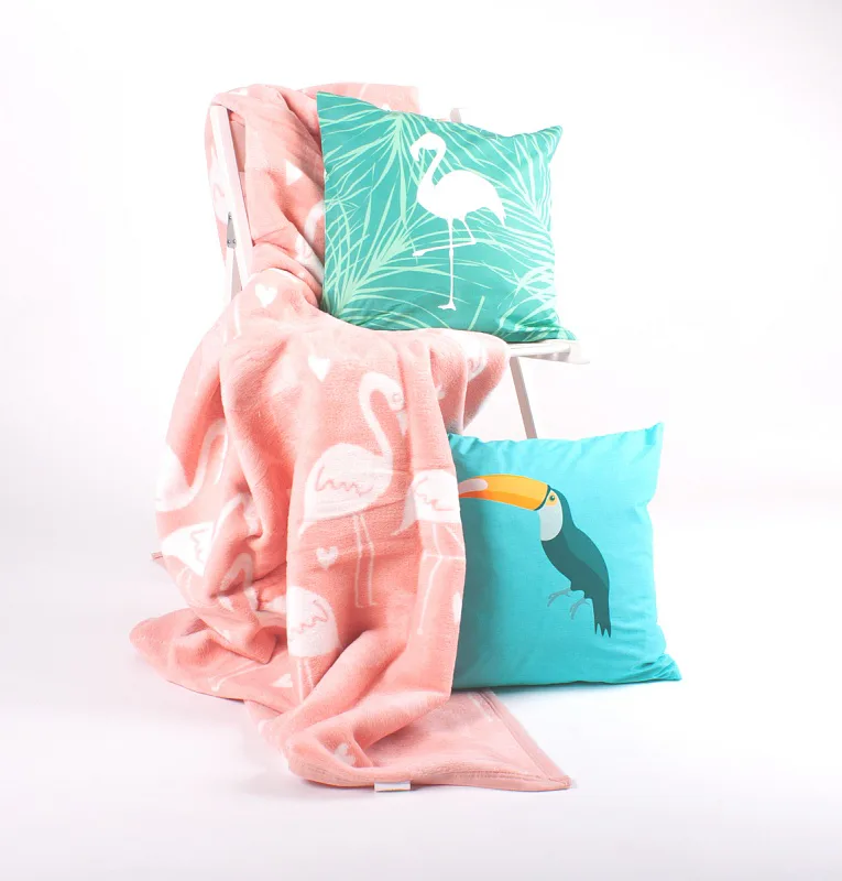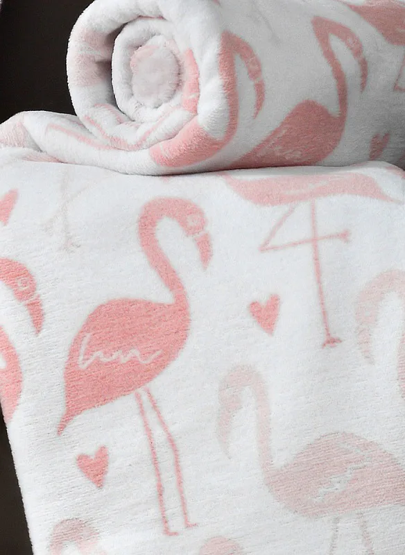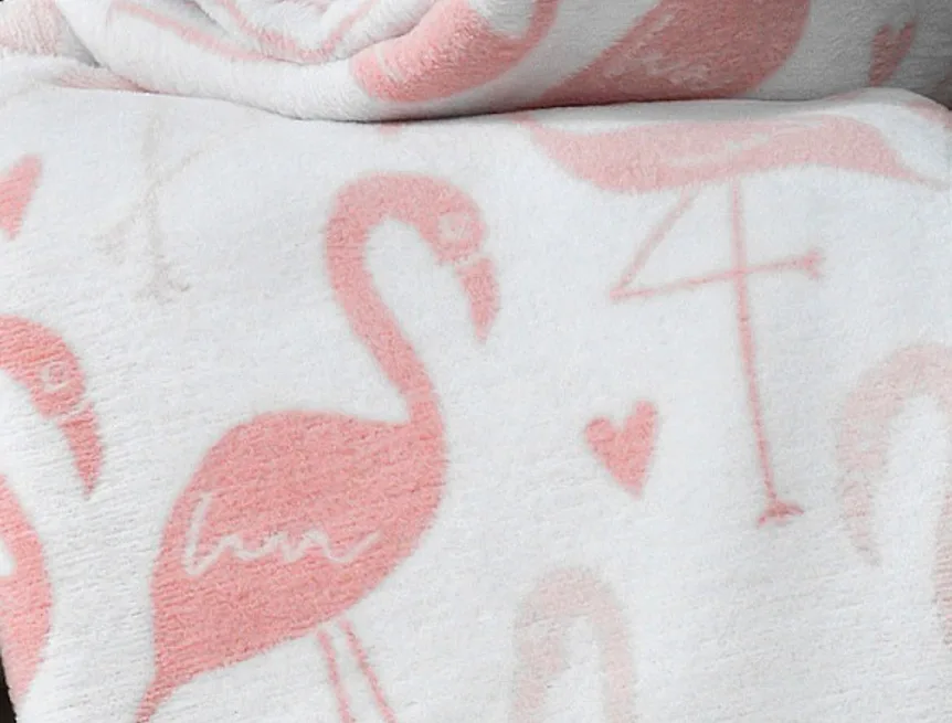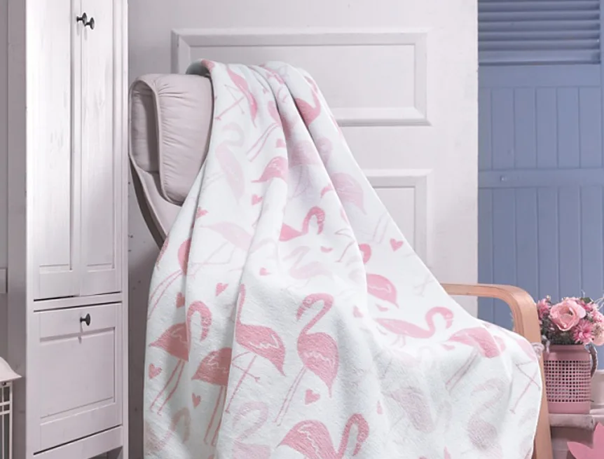 Luxusní bavlněná deka s hustým vlasem, hřejivá a hebká na omak. Nová receptura tkaní je zárukou lehkosti a skvělé prodyšnosti. Deka PINK FLAMINGO bude jedinečným doplňkem vašeho domova a nepostradatelným společníkem pro chladné večery. Atraktivní, ale přesto velmi něžný motiv s plameňáky v pastelové růžové a béžové barvě na přírodním bílém podkladu zaujme každého vyznavače současných trendů. Spodní strana deky je provedena inverzně.