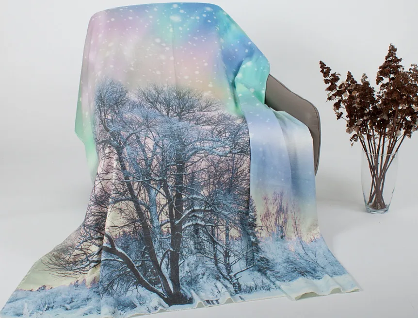 Lehké jako vánek, úžasně hebké a příjemně hřejivé jsou nové designové plédy s digitálním potiskem. Pléd Polární záře vám zpříjemní chladné zimní večery a díky atraktivnímu designu poslouží také jako ozdobný přehoz.