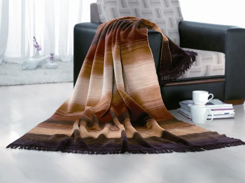 Deku můžete elegantně využít i jako ozdobný přehoz. Deka je olemována hnědou lemovkou (bez třásní).