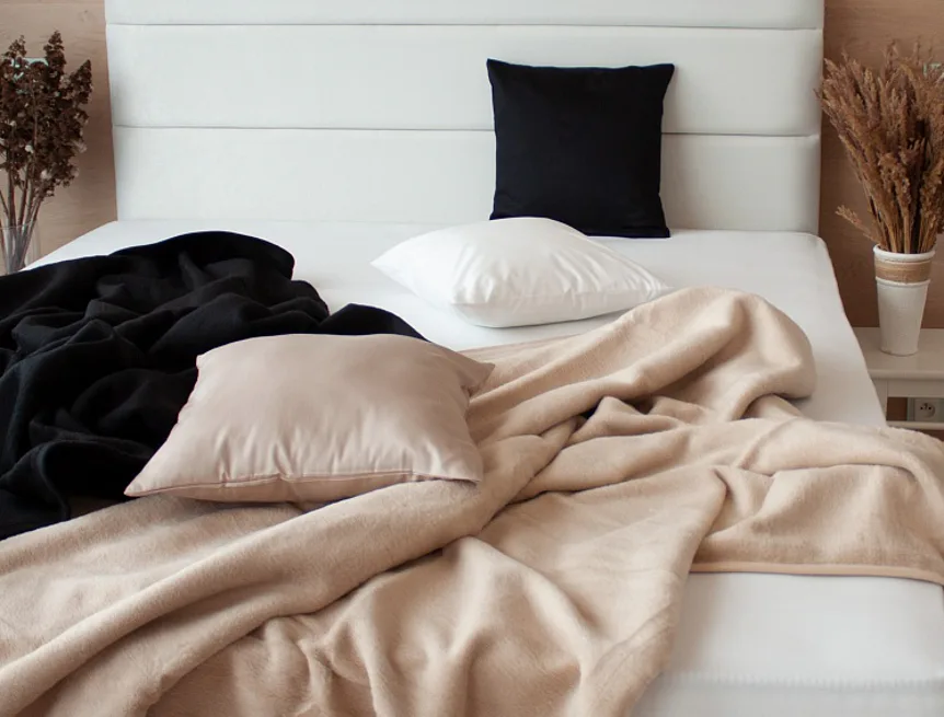 Okraje deky jsou opatřeny lemovkou.