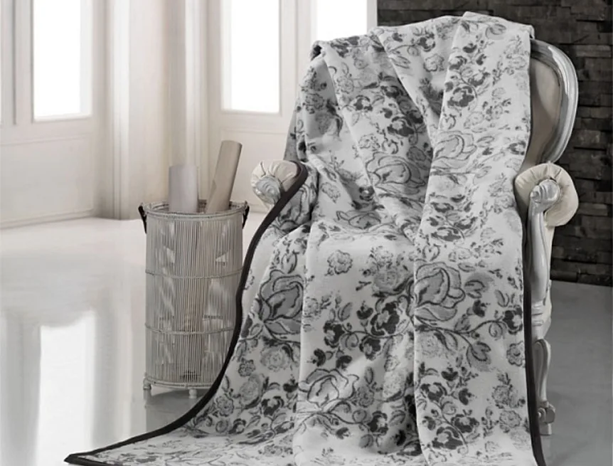 Exkluzivní deka s hustým vlasem, hřejivá a sametová na omak. Jemný a současně velmi atraktivní dezén SALO je zárukou, že deka bude jedinečným doplňkem vašeho domova a nepostradatelným společníkem pro chladné večery. Kombinuje jemný květinový vzor v barvách lomené bílé a šedé.