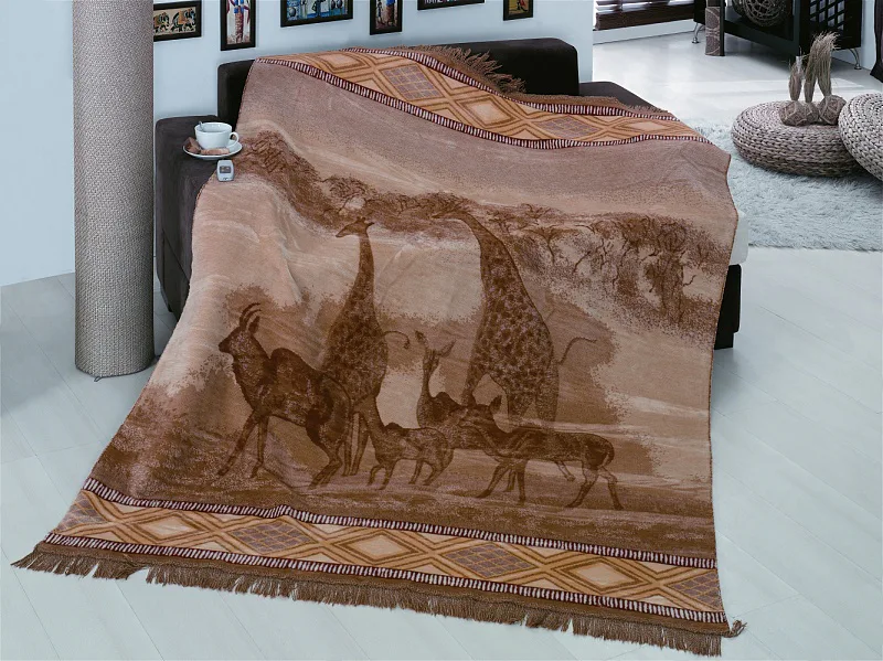 Luxusní deka s hustým vlasem, hřejivá a sametová na omak. Atraktivní dezén SAVANA zajistí, že deka bude jedinečným doplňkem vašeho domova a nepostradatelným společníkem pro chladné večery. Barevně je deka laděna do odstínů cihlové, okrové, pískové žluté a béžové.
