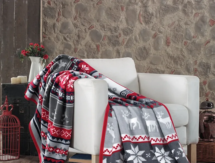 Luxusní bavlněná deka s hustým vlasem, hřejivá a hebká na omak. Nová receptura tkaní je zárukou lehkosti a skvělé prodyšnosti. Deka SCANDIK bude jedinečným doplňkem vašeho domova a nepostradatelným společníkem pro chladné večery. Vánoční motiv ve skandinávském provedení vyniká zajímavou kombinací vínové, šedé a bílé. Spodní strana deky je provedena inverzně.