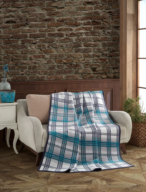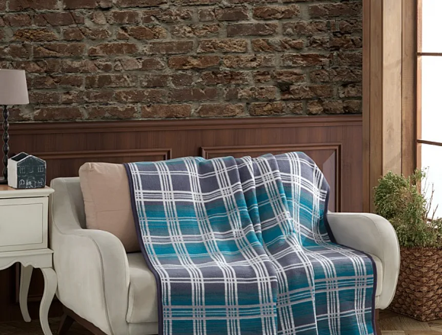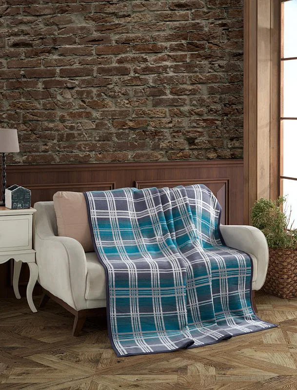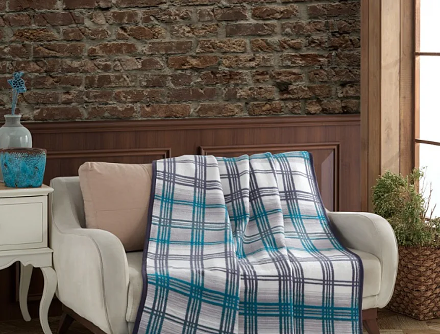 Design: atraktivní károvaný vzor v kombinaci barev bílá, světle šedá, antracitová a tyrkysová