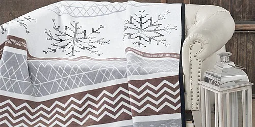 Luxusní bavlněná deka s hustým vlasem, hřejivá a hebká na omak. Oblíbený vánoční dezén SNOW bude jedinečným doplňkem vašeho domova a nepostradatelným společníkem nejen pro chladné sváteční večery. Deka je laděna do odstínů černé, hnědé a šedé na přírodním bílém podkladu. Deka je z druhé strany provedena inverzně (světlé motivy na tmavém podkladu, vločky jsou bílé v černém pruhu).
