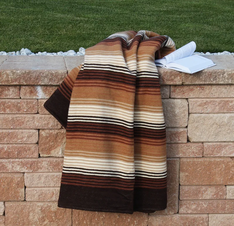 Hravé a jednoduše nadčasové proužky v kombinaci s jemnými pastelovými tóny, vystihují novou kolekci letních dek. Mimořádně měkký a jemný povrch si budete rádi užívat nejen o chladných letních večerech. Hnědé proužky v čokoládových, karamelových, skořicových a krémových tónech. Deka má dva konce zapošité a dva volné.