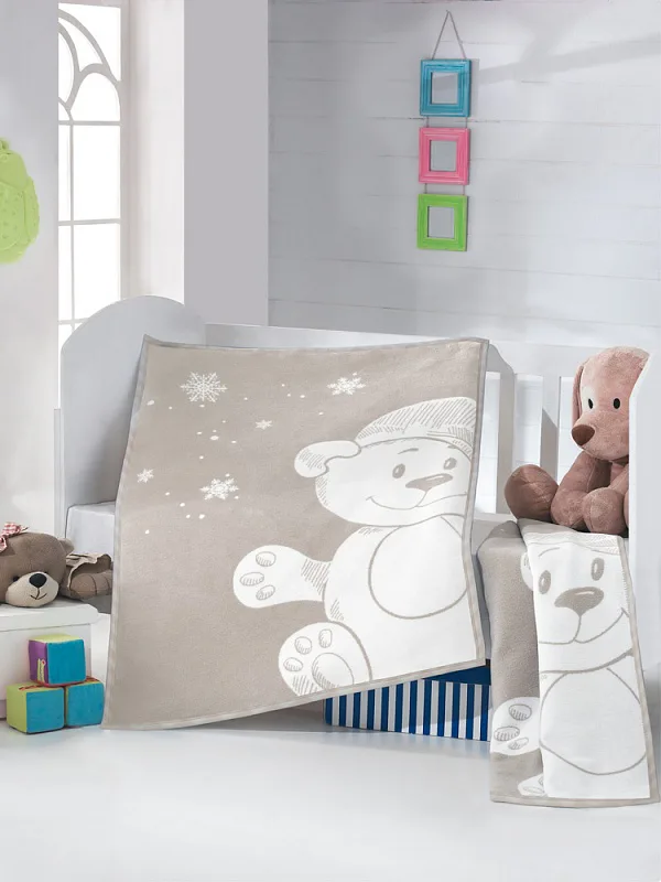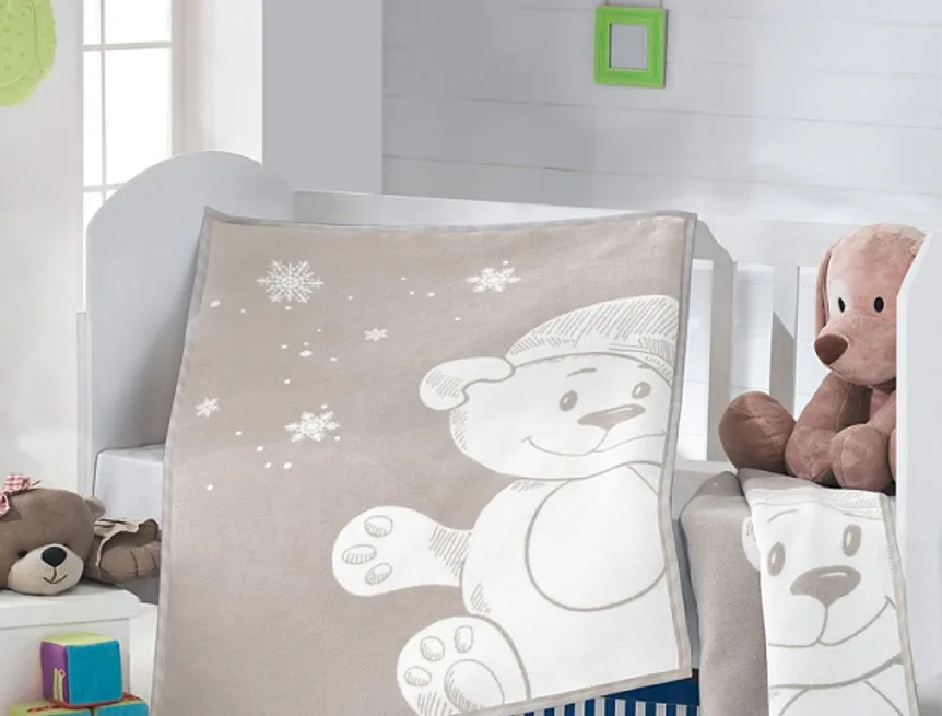 Dětská deka Teddy Beige s vysokým podílem bavlny a hustým vlasem, hřejivá a hebká na dotek, se stane skvělým společníkem v dětském pokojíčku nebo třeba v kočárku. Roztomilý veselý medvídek obklopený sněhovými vločkami vykouzlí úsměv na dětské tváři. Neutrální kombinace světle hnědé s krémově bílou je vhodná pro holčičku i chlapečka.