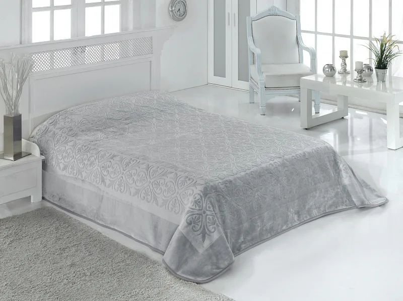 Luxusní deka s mimořádně hladkým a jemným povrchem, pro vaše dokonalé pohodlí. Španělské deky se řadí do kategorie nejkvalitnějších dek a vysokého uživatelského komfortu. Deka VIZION šedá s ornamentálním dezénem ve stříbřitě šedé barvě.
