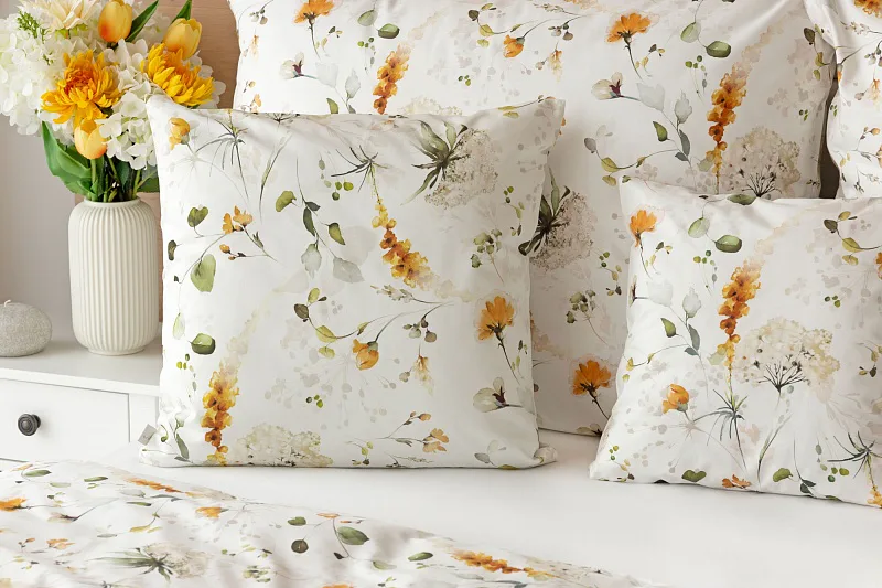 Exkluzivní kolekce designových dekoračních povlaků ze 100% bavlny v provedení luxusního saténu s hustou a pevnou strukturou přináší originální vzor Arleen. Nejmodernější digitální tisk zajišťuje krásné barvy a precizní detaily. Povlak o rozměru 50x50 cm zachycuje z každé strany trochu jiný motiv, zapínání usnadní komfortní zipový uzávěr.