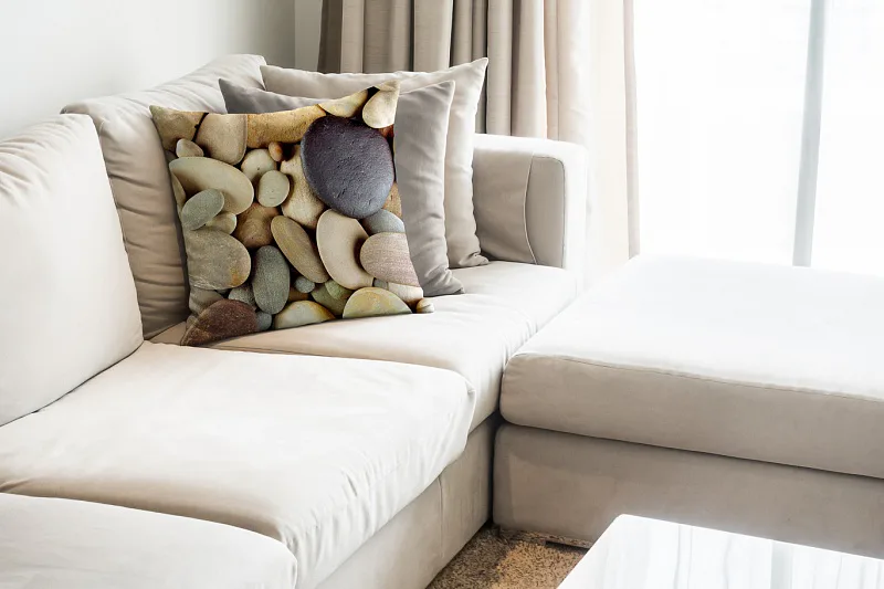 Exkluzivní kolekce designových dekoračních povlaků ze 100% bavlny v provedení luxusního saténu s hustou a pevnou strukturou přináší neodolatelný motiv STONES. Věrné vyobrazení barevných kamenů v přírodních šedých, hnědých a okrových tónech je zajištěno precizním digitálním tiskem. Povlak o rozměru 50x50 cm je z obou stran stejný a je opatřen zipovým uzávěrem.