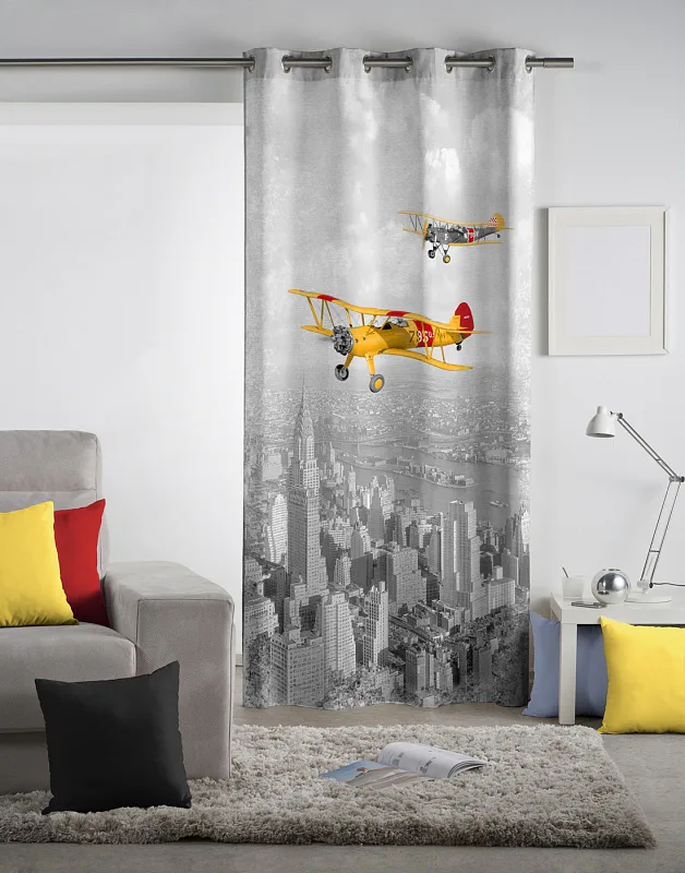 Exkluzivní kolekce dekoračních závěsů přináší mimořádný zážitek a věrné provedení detailu. To vše díky nejmodernější digitální technologii tisku. Nyní se můžete doma cítit jako v oblacích prostřednictvím trendové koláže leteckých motivů v podání závěsu AVION. Výrazné žluté a červené motivy dokonale vyniknou na šedém podkladu. Jistě oceníte i látku s velmi hustou a pevnou strukturou, vyrobenou ze 100% bavlny, kterou jsme opatřili tzv. sametovým povrchem. Potisk je jednostranný.