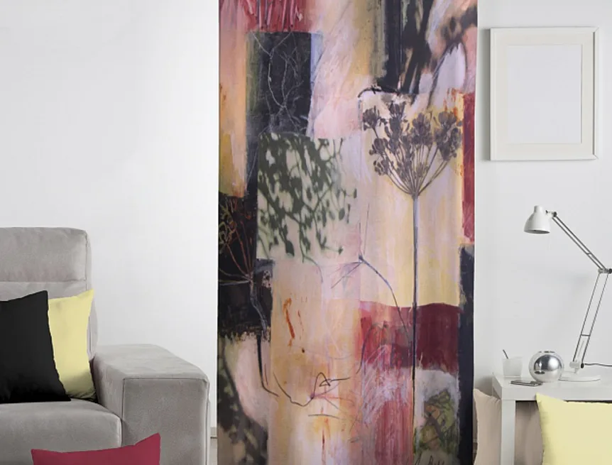 Exkluzivní kolekce dekoračních závěsů přináší mimořádný zážitek a věrné provedení detailu. To vše díky nejmodernější digitální technologii tisku. Nyní se můžete doma cítit jako v galerii prostřednictvím závěsu MODERNA. Okouzlující paleta pastelových odstínů vínové a žluté oživí každý interiér. Jistě oceníte i látku s velmi hustou a pevnou strukturou, vyrobenou ze 100% bavlny, kterou jsme opatřili tzv. sametovým povrchem. Potisk je jednostranný.