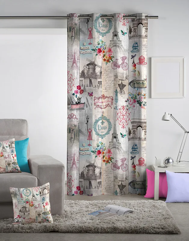 Exkluzivní kolekce dekoračních závěsů přináší mimořádný zážitek a věrné provedení detailu. To vše díky nejmodernější digitální technologii tisku. Jestli patříte mezi příznivce romantické Paříže, nechte se okouzlit závěsem PARIS DE SALON. Okouzlující jemné pastelové tóny růžové, šedé a petrolejové na světlém podkladu prozáří každý okamžik. Jistě oceníte i látku s velmi hustou a pevnou strukturou, vyrobenou ze 100% bavlny, opatřenou sametovým povrchem. Potisk je jednostranný.
