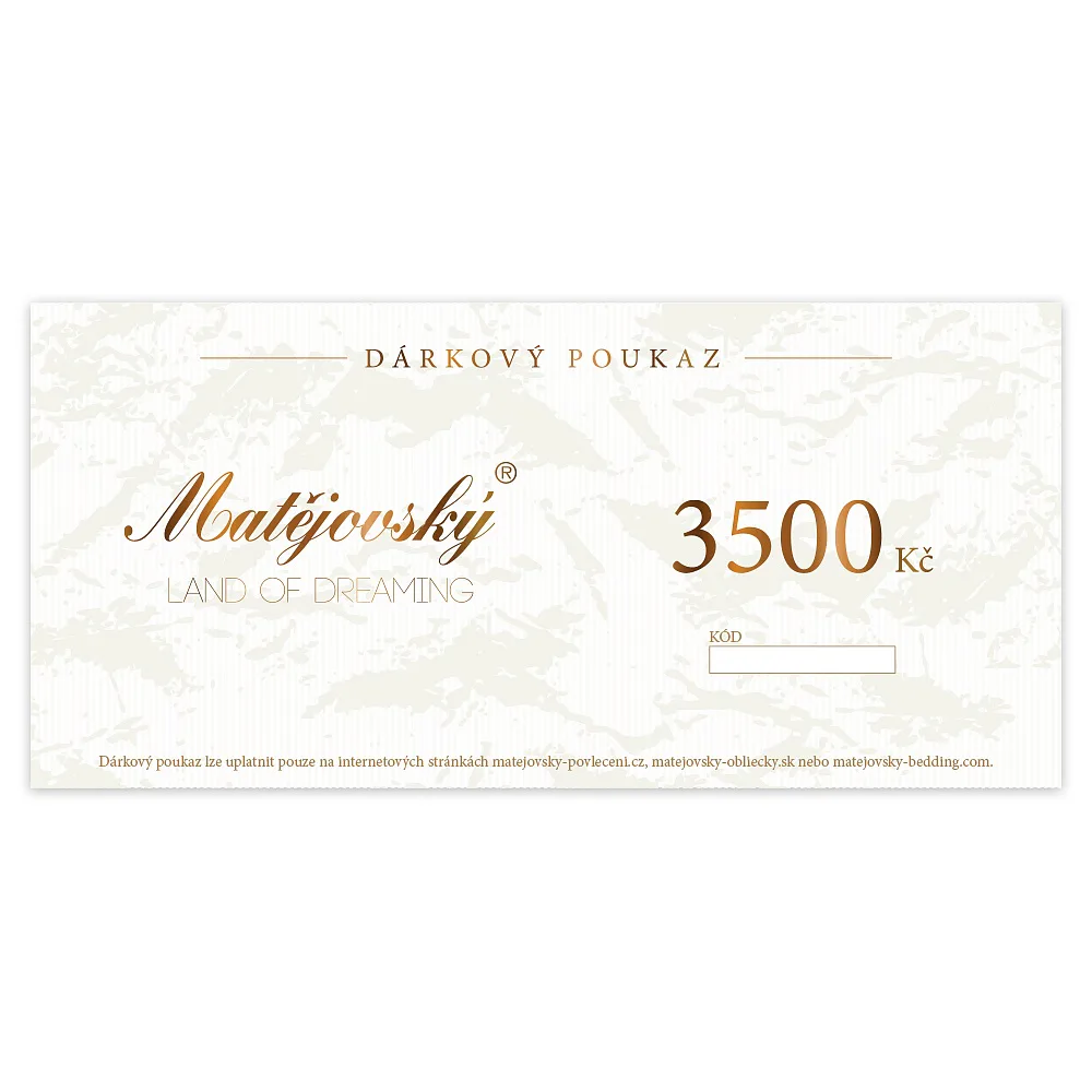 Jedná se o poukaz v elektronické formě, který si budete moci vyzvednout online z našich stránek ihned po zaplacení. Odkaz na vyzvednutí poukazu obdržíte v e-mailu o potvrzení objednávky. Poukaz lze využít pouze na e-shopu www.matejovsky-povleceni.cz nebo v kamenné prodejně v Semilech. Platnost poukazu je 1 rok od zakoupení.