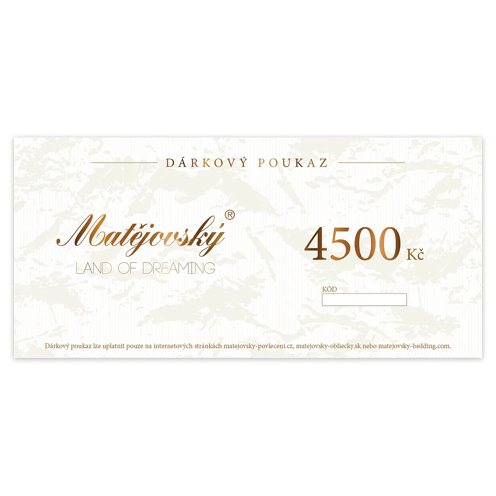 Jedná se o poukaz v elektronické formě, který si budete moci vyzvednout online z našich stránek ihned po zaplacení. Odkaz na vyzvednutí poukazu obdržíte v e-mailu o potvrzení objednávky. Poukaz lze využít pouze na e-shopu www.matejovsky-povleceni.cz nebo v kamenné prodejně v Semilech. Platnost poukazu je 1 rok od zakoupení.