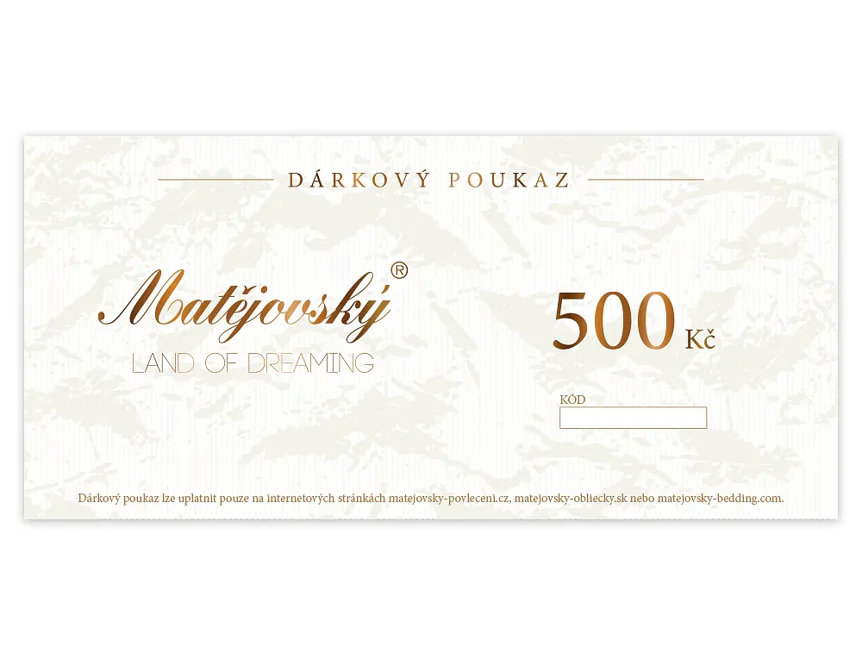 Jedná se o poukaz v elektronické formě, který si budete moci vyzvednout online z našich stránek ihned po zaplacení. Odkaz na vyzvednutí poukazu obdržíte v e-mailu o potvrzení objednávky. Poukaz lze využít pouze na e-shopu www.matejovsky-povleceni.cz nebo v kamenné prodejně v Semilech. Platnost poukazu je 1 rok od zakoupení.