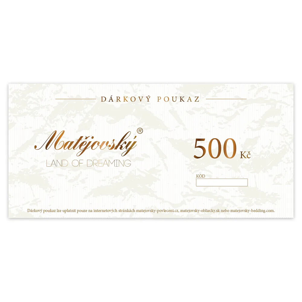 Jedná se o poukaz v elektronické formě, který si budete moci vyzvednout online z našich stránek ihned po zaplacení. Odkaz na vyzvednutí poukazu obdržíte v e-mailu o potvrzení objednávky. Poukaz lze využít pouze na e-shopu www.matejovsky-povleceni.cz nebo v kamenné prodejně v Semilech. Platnost poukazu je 1 rok od zakoupení.