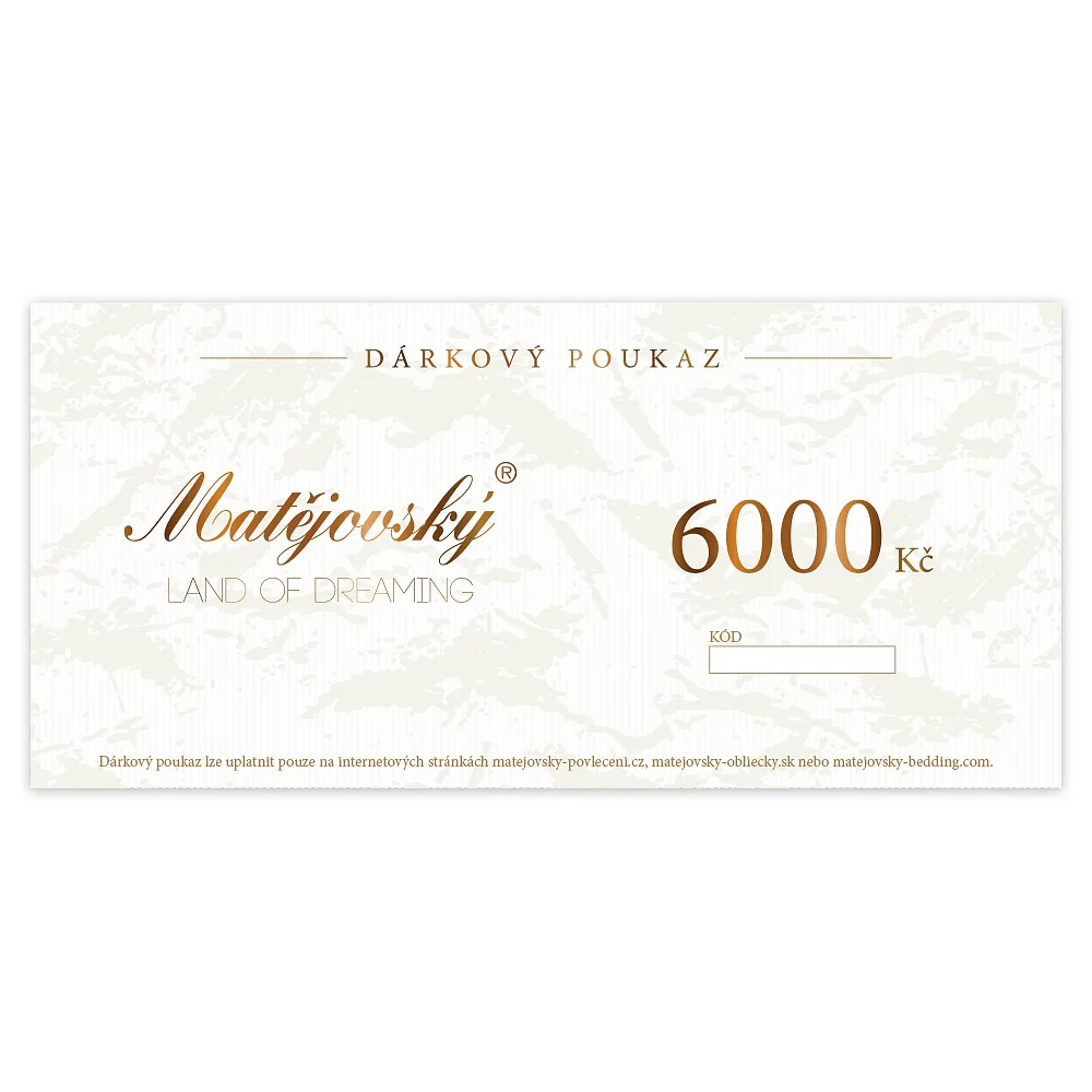 Jedná se o poukaz v elektronické formě, který si budete moci vyzvednout online z našich stránek ihned po zaplacení. Odkaz na vyzvednutí poukazu obdržíte v e-mailu o potvrzení objednávky. Poukaz lze využít pouze na e-shopu www.matejovsky-povleceni.cz nebo v kamenné prodejně v Semilech. Platnost poukazu je 1 rok od zakoupení.