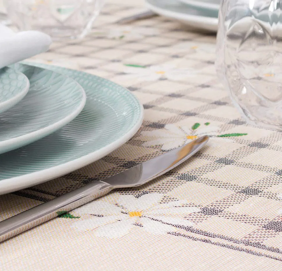 Ubrus Daisy zdobený květy kopretin a ozvláštněný kostkovaným vzorem je ideálním doplňkem pro každou příležitost. Jemný design s rustikálním nádechem se pojí s praktičností díky pevnému a odolnému materiálu.