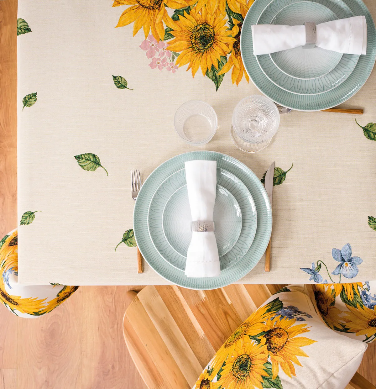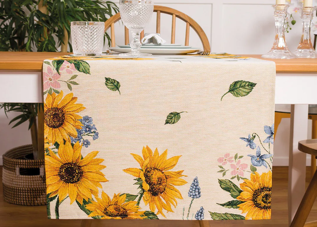 Ubrus Flora zdobený květy slunečnic je ideální doplněk pro každou příležitost. Originální design s rustikálním nádechem se pojí s praktičností díky pevnému a odolnému materiálu.