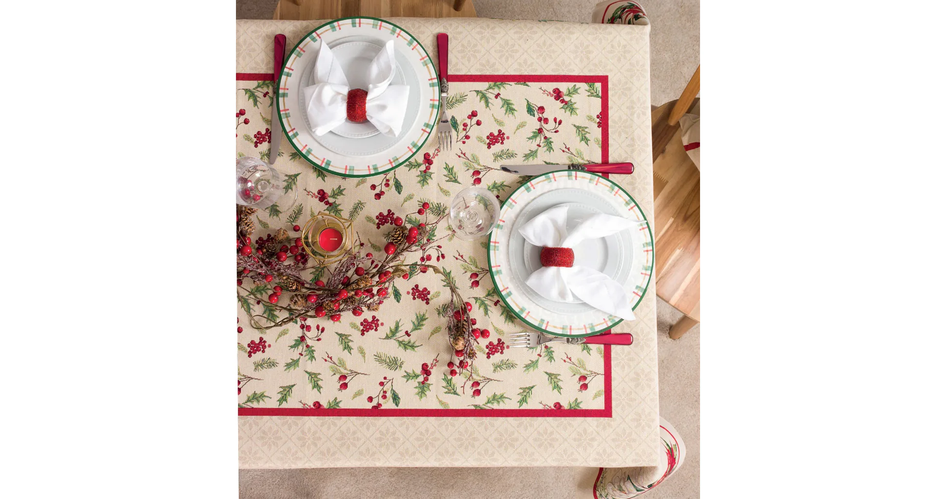 Ubrus Nathalie se svátečním motivem je ideální doplněk pro každou příležitost. Atraktivní design s rustikálním nádechem se pojí s praktičností díky pevnému a odolnému materiálu.