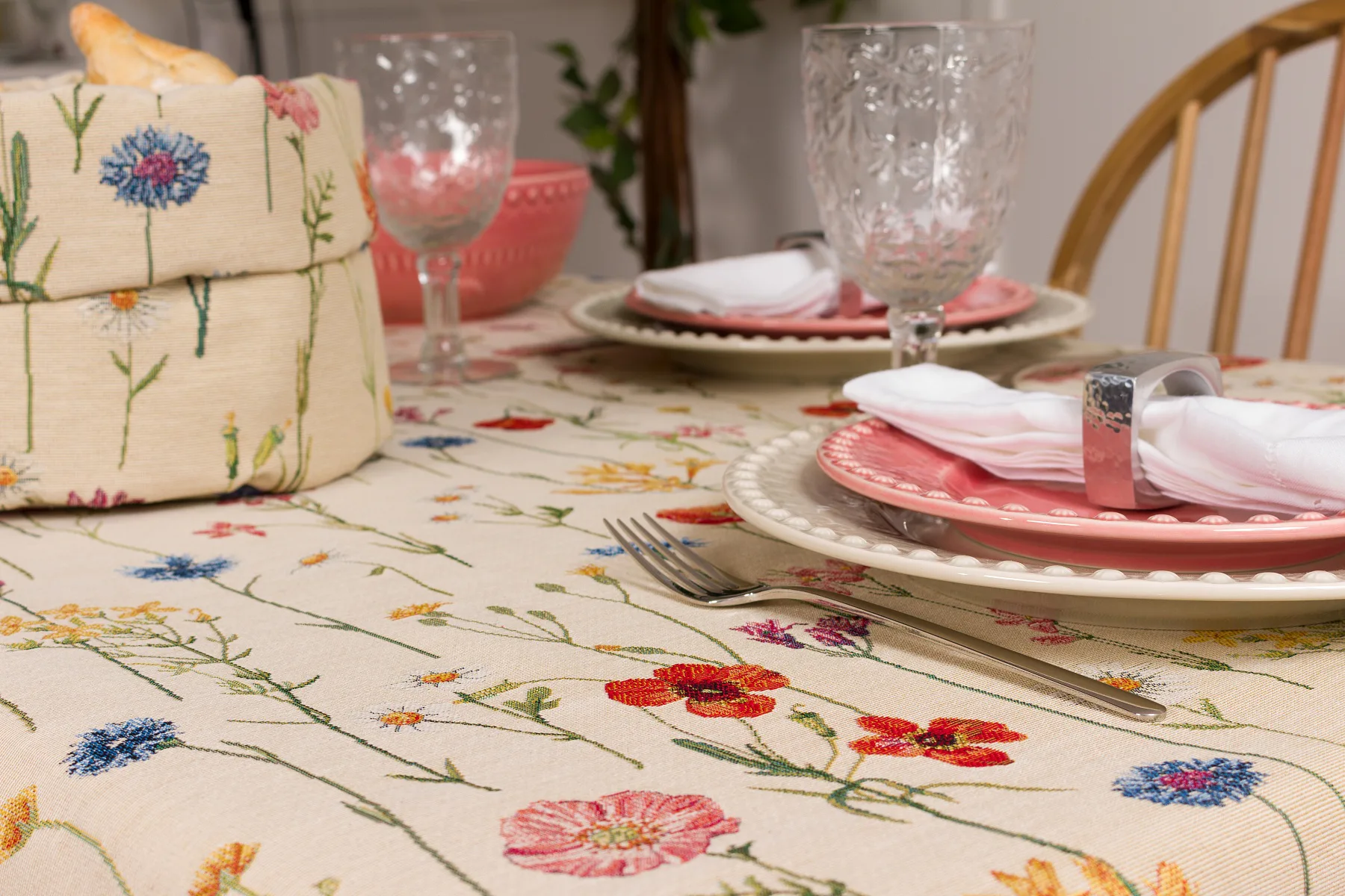 Ubrus Wild Flowers s motivem lučního kvítí je ideální doplněk pro každou příležitost. Jemný design s rustikálním nádechem se pojí s praktičností díky pevnému a odolnému materiálu.