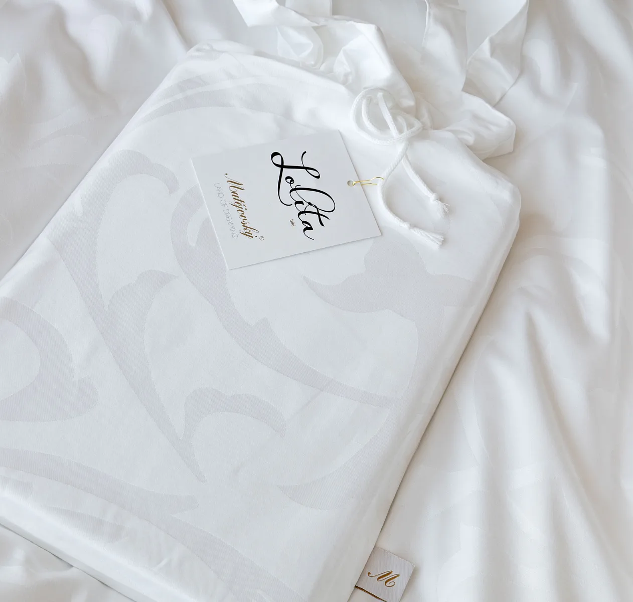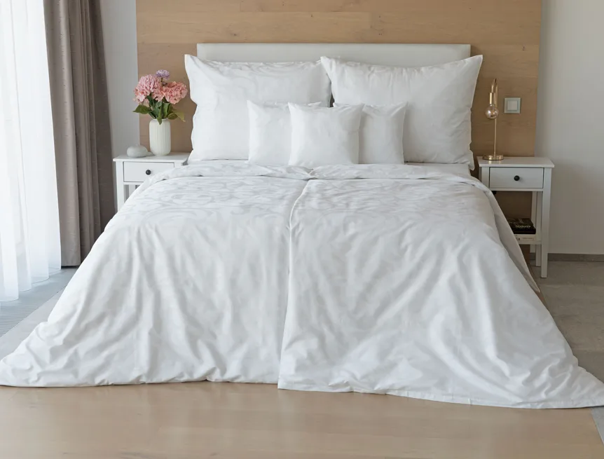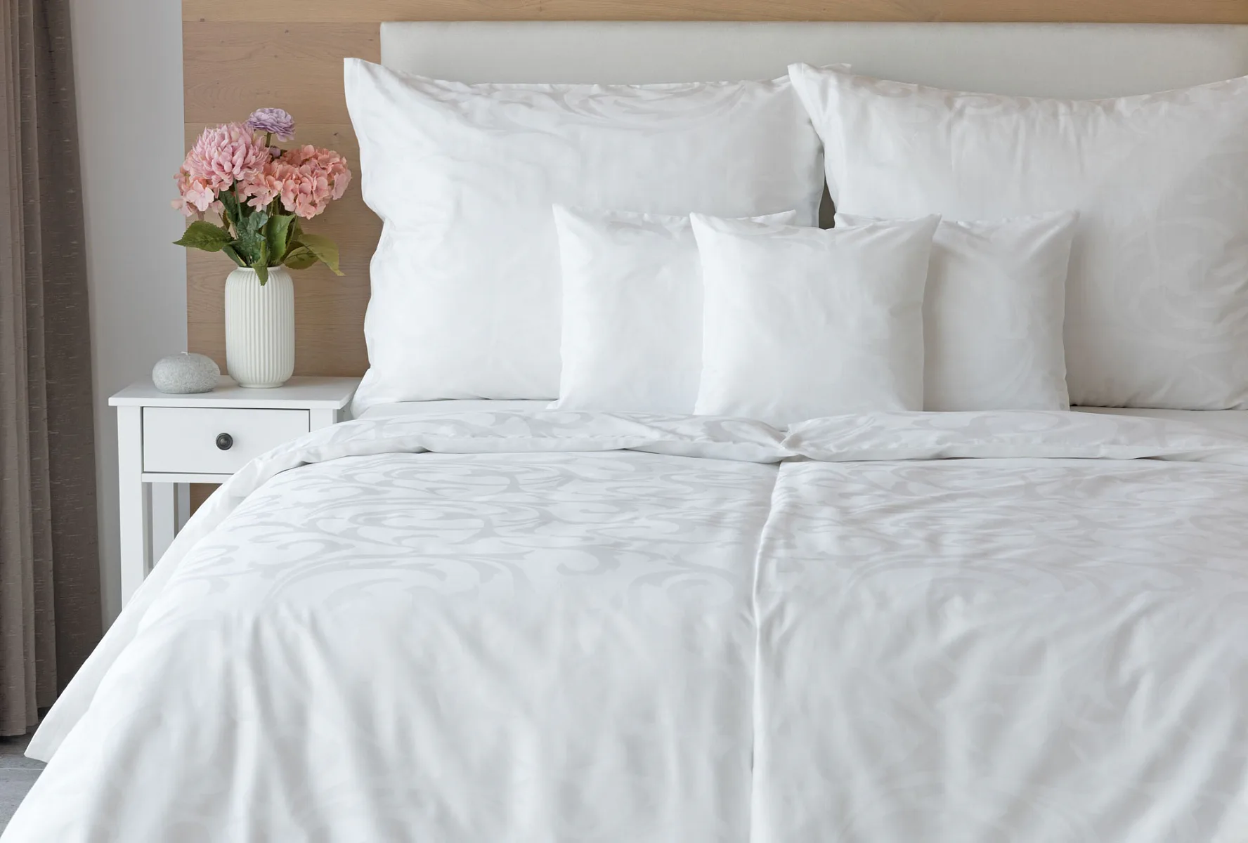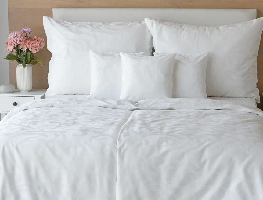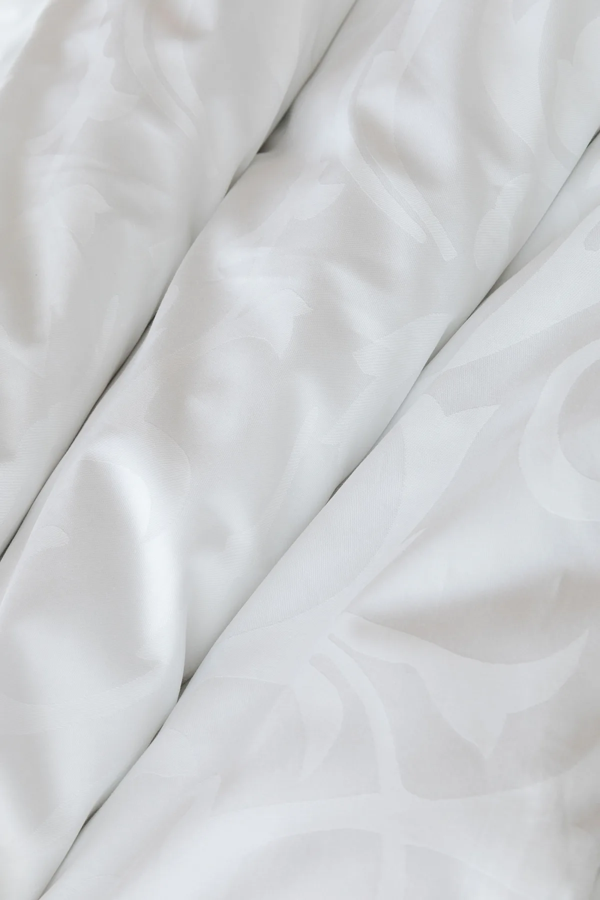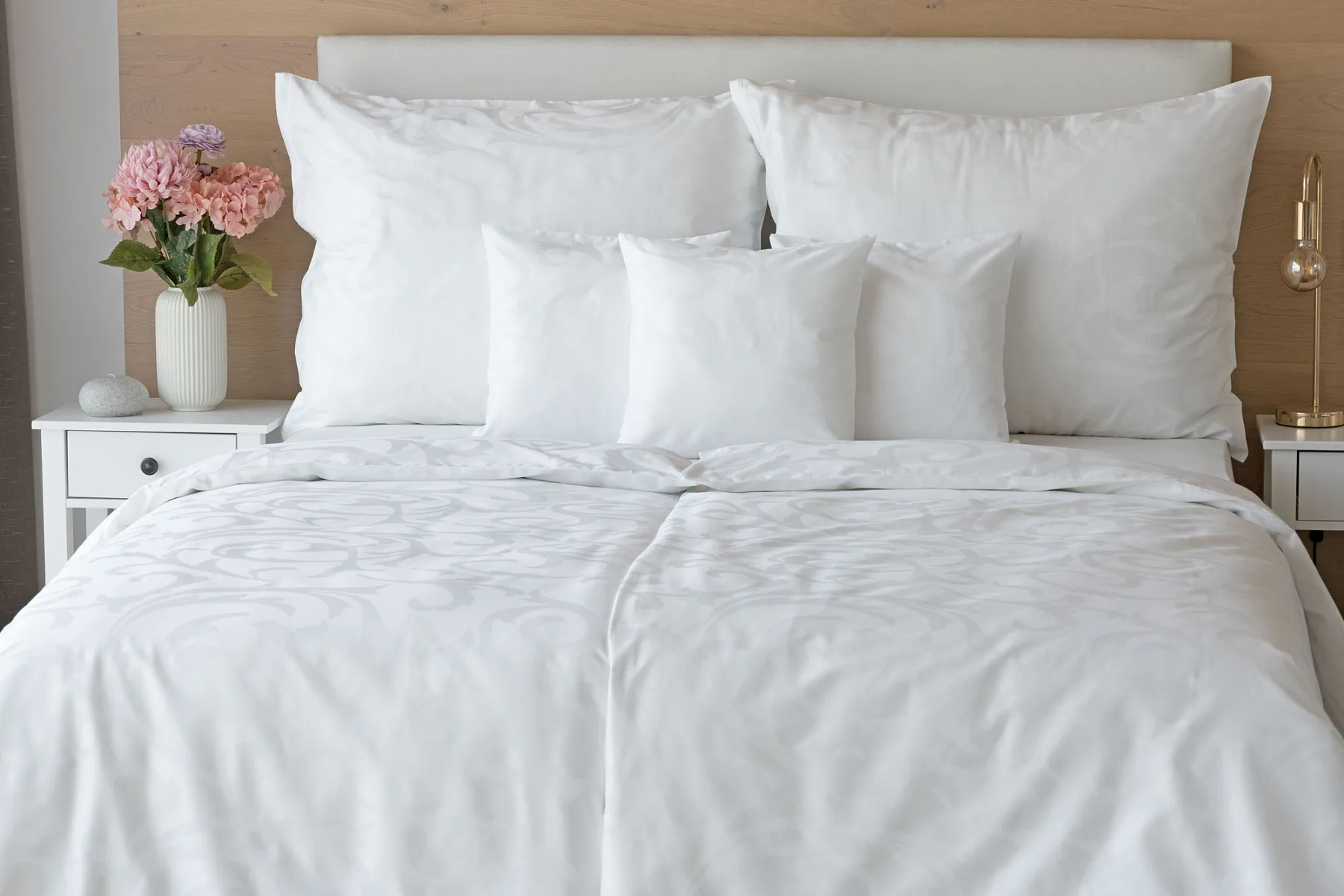 Čistě bílé damaškové povlečení v luxusním žakárovém provedení s decentním vzorem, který působí na lůžku víc než elegantně. Povlečení je vyrobeno z vysoce kvalitní česané a mercerované bavlněné příze.